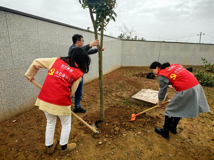 植樹活動(dòng)現(xiàn)場氣氛熱烈,黨員們分組協(xié)作,力求每棵樹苗都扎根牢固。黨員們還為樹苗掛上心愿牌,為活動(dòng)留下溫情紀(jì)念。