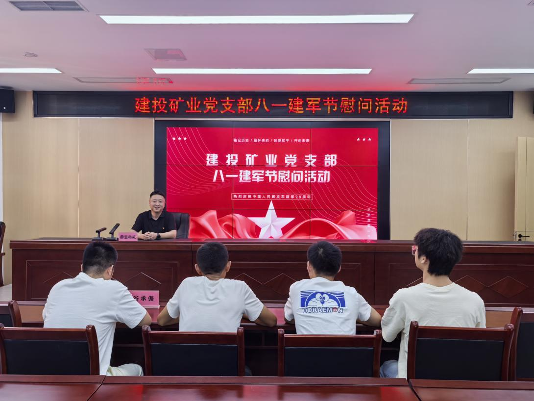 為慶祝中國人民解放軍建軍98周年,進(jìn)一步激發(fā)公司退役軍人干事創(chuàng)業(yè)熱情,凝聚團(tuán)結(jié)奮斗的磅礴力量。8月1日,建投礦業(yè)黨支部開展“八一”慰問送關(guān)懷活動,并召開座談會。