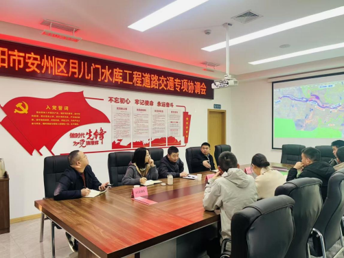 11月27日,集團副總經(jīng)理馮文生組織召開安州區(qū)月兒門水庫工程道路交通專項協(xié)調(diào)會。(素材來源:項目安環(huán)中心 張瑞桃)